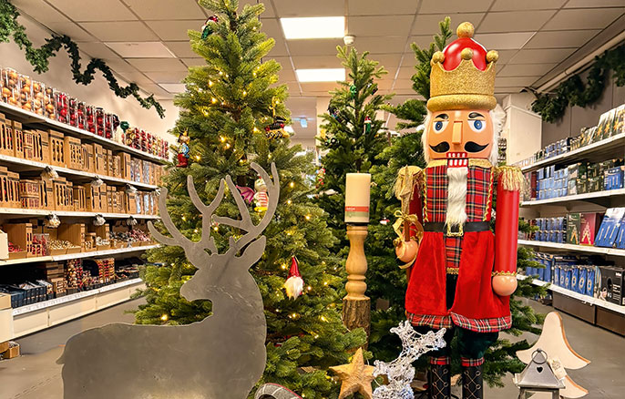 Foyer, Titelstory, WeihnachtenDie Ausstellungsfläche im Gartencenter des farbenkrauth Baumarktes verwandelt sich in ein stimmungsvolles, glitzerndes Lichtermeer mit liebevoll ausgewähltem Weihnachtsschmuck