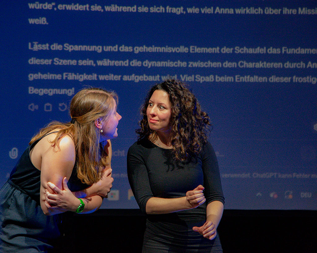 Im Anschluss an die Aufführung diskutieren Regisseur Stefan Kollmeier und die Schauspielerinnen des AI Theatre gemeinsam mit eingeladenen Wissenschaftlerinnen und dem Publikum über Fragen der KI-Sicherheit, Verantwortung und das uralte Thema von Gut und Böse – bei Mensch und Maschine.