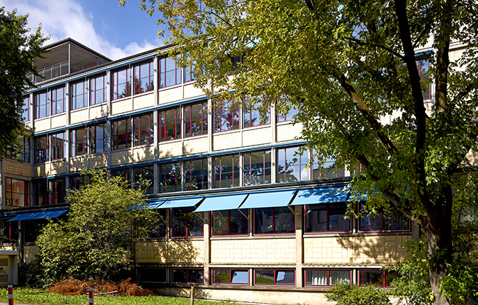 Das humanistische Ludwig-Georgs-Gymnasium, ist einer der fünf in Darmstadt verwirklichten Meisterbauten, die 1951 aus dem „Darmstädter Gespräch“ zum Thema „Mensch und Raum“ hervorgegangen sind. Max Taut (1884-1967) ist der Architekt des zweiten Schulkomplexes in der Reihe der Meisterbauten.