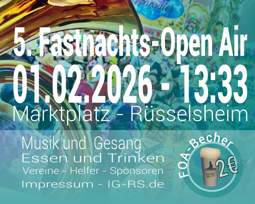 Damit die Interessengemeinschaft Rüsselsheim (IGRS) die Fastnacht auf der Straße in Rüsselsheim für jeden erlebbar machen kann, sind sie als gemeinnütziger Verein auf jegliche finanzielle, materielle oder ideelle Unterstützung angewiesen. Daher kann jeder durch den Kauf des „FOA-Bechers“ die Veranstaltung unterstützen und dafür sorgen, dass diese auch in Zukunft erhalten bleibt.