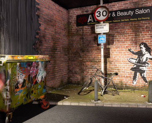 Zahlreiche Banksy-Werke aus den vergangenen Jahren haben inzwischen auch den Weg in den kommerziellen Alltag gefunden. Die Frage, ob Street-Art kommerzialisiert werden darf, steht auf einem anderen Papier und darf natürlich diskutiert werden. Darf seine Kunst ausgestellt werden oder darf Street-Art im Allgemeinen überhaupt im Museum oder in Galerien gezeigt werden? Denn schließlich ist Banksy ja auch ein Synonym für das Ablehnen von Kommerz. Die Antwort gibt uns Banksy selbst, wie die von Juni bis Ende August 2023 in Glasgow‘s Gallery of Modern Art präsentierte Ausstellung gezeigt hat, die – erstmalig nach 14 Jahren – vom Künstler selbst autorisiert war.