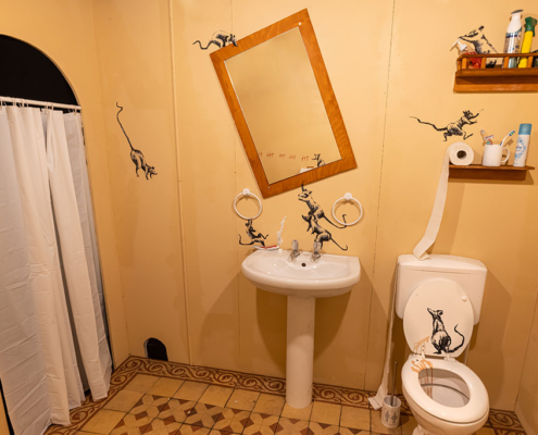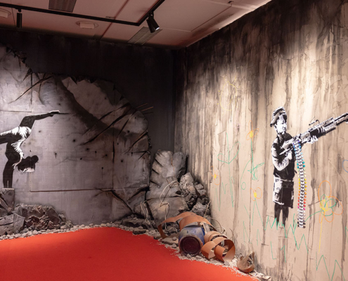 Die Ausstellung „House of Banksy – An Unauthorized Exhibition“ bringt die Botschaft dieses künstlerischen Genies einem breiteren Publikum näher, ohne weit reisen zu müssen. Hier kann man die bekanntesten Street-Art-Werke Banksys an einem Ort besuchen und seine Auseinandersetzung mit den verschiedenen Brennpunktthemen wie Krieg, Fremdenhass, Polizeigewalt, Menschen auf der Flucht, Kapitalismus, globale Erderwärmung, Gewalt an Frauen, CCTV oder auch der Corona-Pandemie auf eine völlig andere Art begegnen. Eine große österreichische Tageszeitung schrieb dazu: „Eine Banksy-Ausstellung ist wie ein gesprühtes Spiegelbild der Gesellschaft“ – und dabei ist eine Banksy-Ausstellung auch immer aktuell und nah am Zeitgeist. Banksy möchte die Menschen mit seiner Kunst begeistern und berühren, gleichzeitig aber auch polarisieren und zum Nachdenken anregen. Es gibt keinen vergleichbaren Künstler, der es immer wieder schafft, sich mit seinen teilweise spektakulären wie durchdachten Aktionen medienwirksam in Szene zu setzen. Er nutzt seine Kunst dabei nicht, um auf sich selbst oder sein neuestes Werk aufmerksam zu machen, sondern um damit auf Missstände und Brennpunkte hinzuweisen, vor denen wir alle zu gern die Augen verschließen. Die Locations sind dabei ganz bewusst und sorgfältig von ihm ausgewählt. Wohl auch deshalb zählt Banksy zweifellos zu den bedeutendsten Künstlern unserer Zeit. Von Medien und Fachleuten wird er auch oft als der moderne Robin Hood bezeichnet.