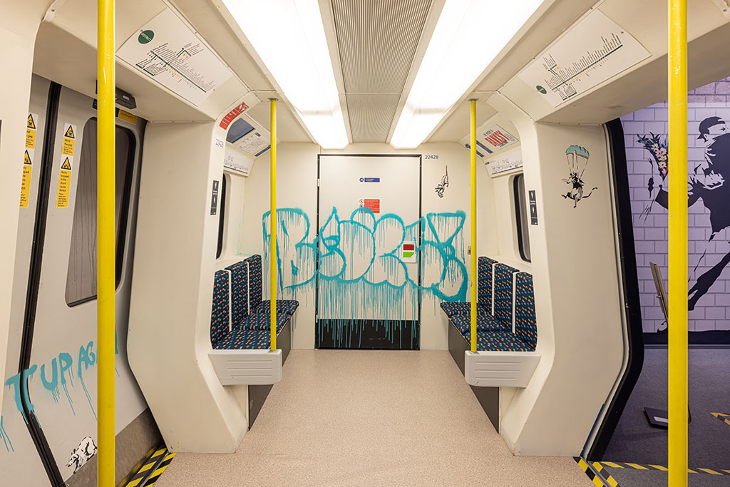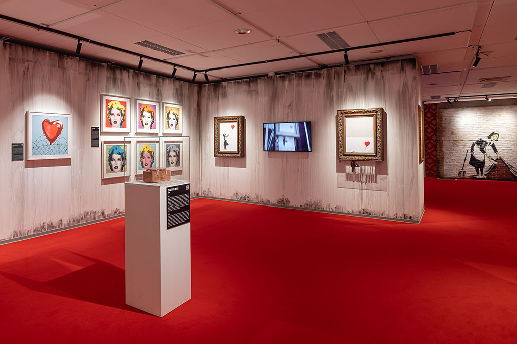 Graffitis, Fotografien, Skulpturen, Videoinstallationen und Drucke auf verschiedenen Materialien wie Leinwand, Fine Art Papier, Holz, Aluminium, Gips, Beton und Backstein wurden eigens für diese Ausstellung reproduziert und zusammengetragen. In einem aufwändigen und einzigartigen Setting offenbart sich den Besuchern ein umfassender Einblick in das Gesamtwerk des Ausnahmekünstlers. Diese Hommage und die dort gezeigten Bildinstallationen sind aufgrund seines anonymen Status nicht vom Künstler selbst autorisiert. Etwa 80% aller ausgestellten Graffitis und Werkmotive sind mittlerweile im Original kaum oder gar nicht mehr zugänglich. Sie wurden entfernt, abgerissen, zerstört, übersprüht oder aus den Wänden gerissen und anschließend für teures Geld versteigert. Einige davon, insbesondere seine Serigrafien, befinden sich heute in Privatbesitz oder im Besitz von Kunsthändlern.
