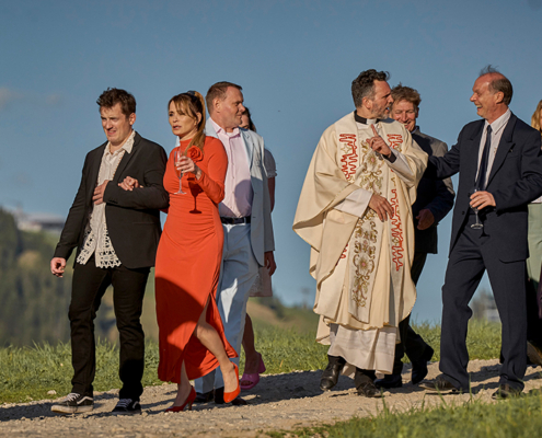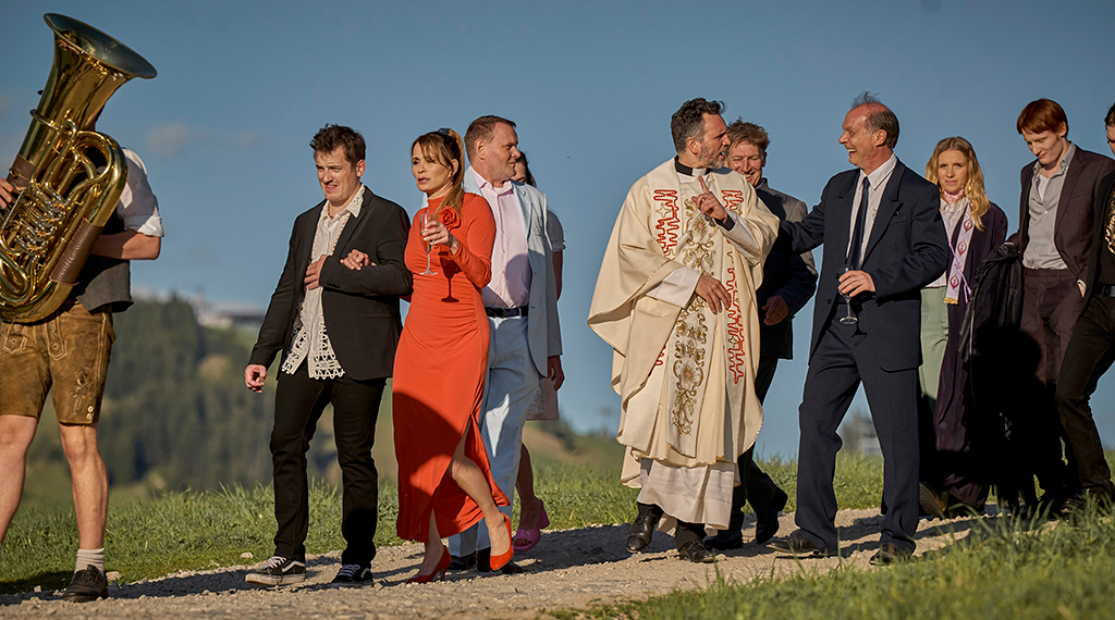 Eine tragikomische Tour de Farce in den Alpen bietet die Impro-Comedy „Die Hochzeit“: Hochrangig besetzt und wunderbar schräg; Sechs Episoden, jeweils eine halbe Stunde ohne Drehbuch. Unterhaltung, wie sie sein soll, wenn das Rezept stimmt und die Zutaten passen. Gedreht wurde an nur zwei Tagen im Juni vergangenen Jahres.